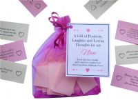 The organza bag measures 13 x 18cm and comes with a laminated label attached which reads "A Gift of Positivity, Laughter and Loving Thoughts for my Grandma". Every day for a month, pick a quote to remind you that I am always thinking of you." The gift is then packaged in a cellophane bag.